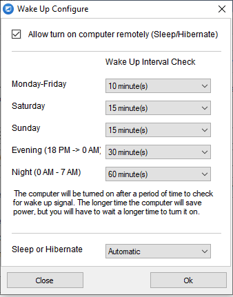 However, unlike other software using Wake-On-Lan (WOL), Ultraviewer uses the Wakeup Timer function of the PC to wake it up after a certain period of time and automatically turns it off if there's no turn-on signal.